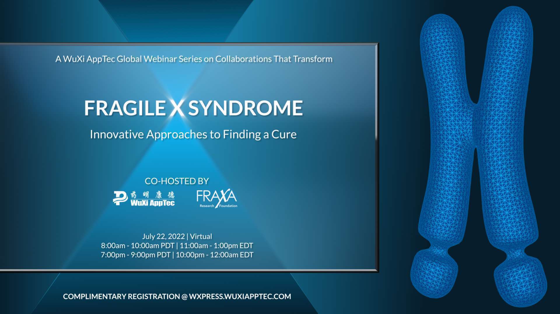 We are delighted to share with you that 35 leading experts will join us for the upcoming event, “Fragile X Syndrome: Innovative Approaches to Finding a Cure,” which will be held virtually on July 22nd, 2022 on Fragile X Syndrome Awareness Day as we continue to take part in advancing breakthroughs for rare disease patients thanks to Artificial Intelligence. This cornerstone event is co-hosted by the FRAXA Research Foundation together with Wuxi Apptec.